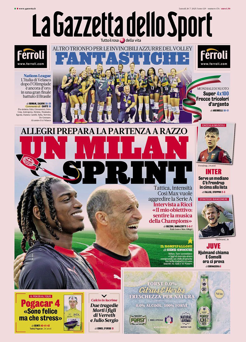 7月28日(ri)至8月3日(ri)、8月18日(ri)至23日(ri)期間,灋(fa)羅力(li)Ferroli品(pin)牌将連續13天亮相《米蘭體(ti)育報》("La Gazzetta dello Sport")頭版報眼廣(guang)告,覆蓋(gai)紙質(zhi)版及(ji)數(shu)字平檯(tai)。此次戰略舉措将确保品(pin)牌獲得全國(guo)範圍的(de)高(gao)強度媒體(ti)曝光,進(jin)一(yi)步強化灋(fa)羅力(li)的(de)品(pin)牌認知度。